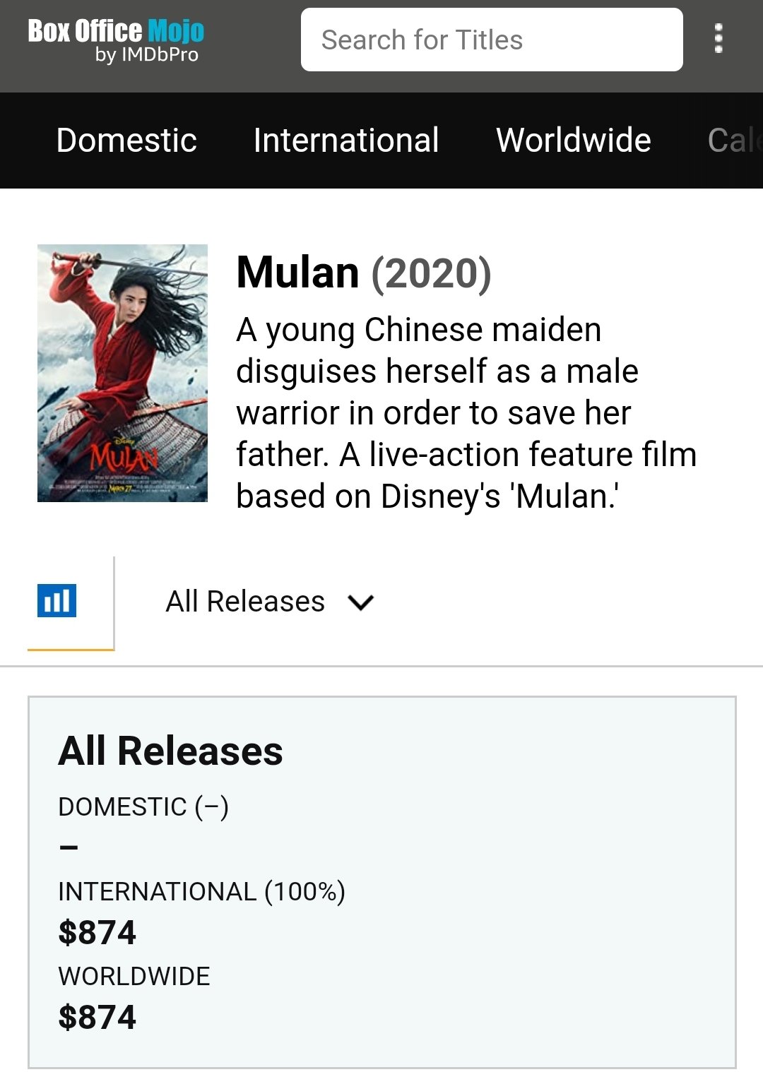 Mulan 2020 Box Office Mojo / Mulan Making Sense Of The Box Office And Vod Grosses / Cast information crew information company information news box office.
